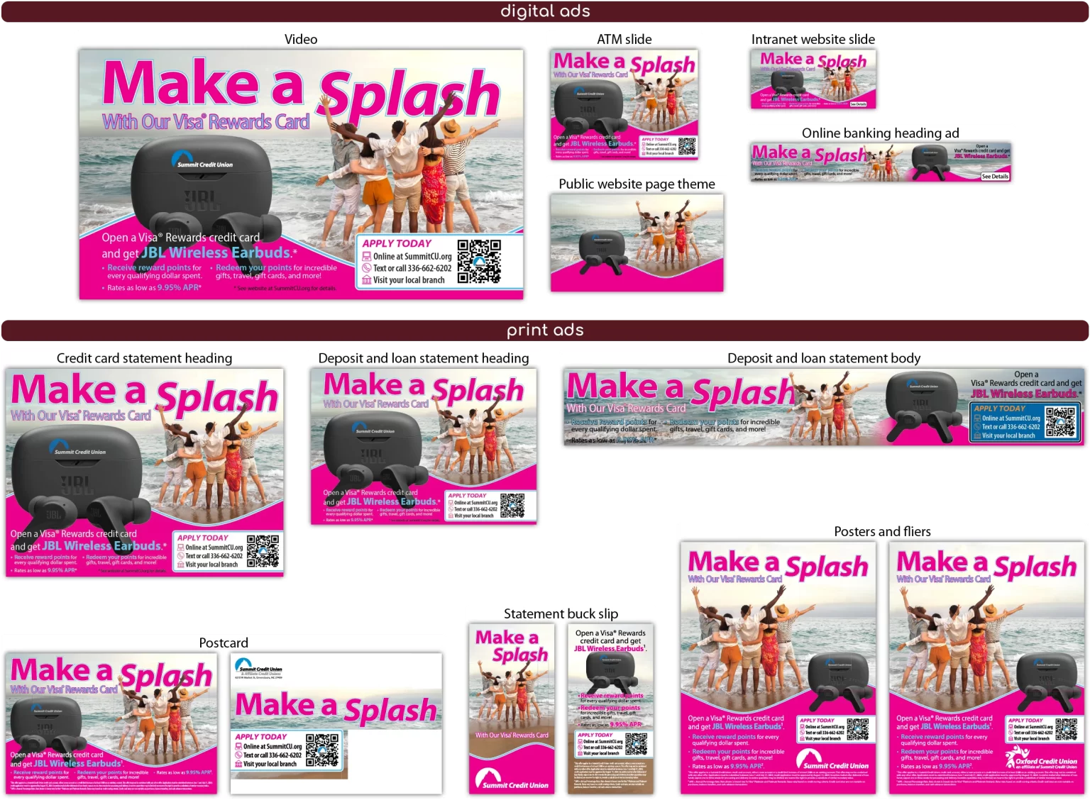1 Jun 2024 Make a Splash by dburkhart | posted in: 2024, Campaign, Portfolio, Video | 0 Various Ad FormatsATM SlideIntranet SlideStatement BodyStatement Buck SlipPostcardPosters and Fliers Summary of All Ad Formats