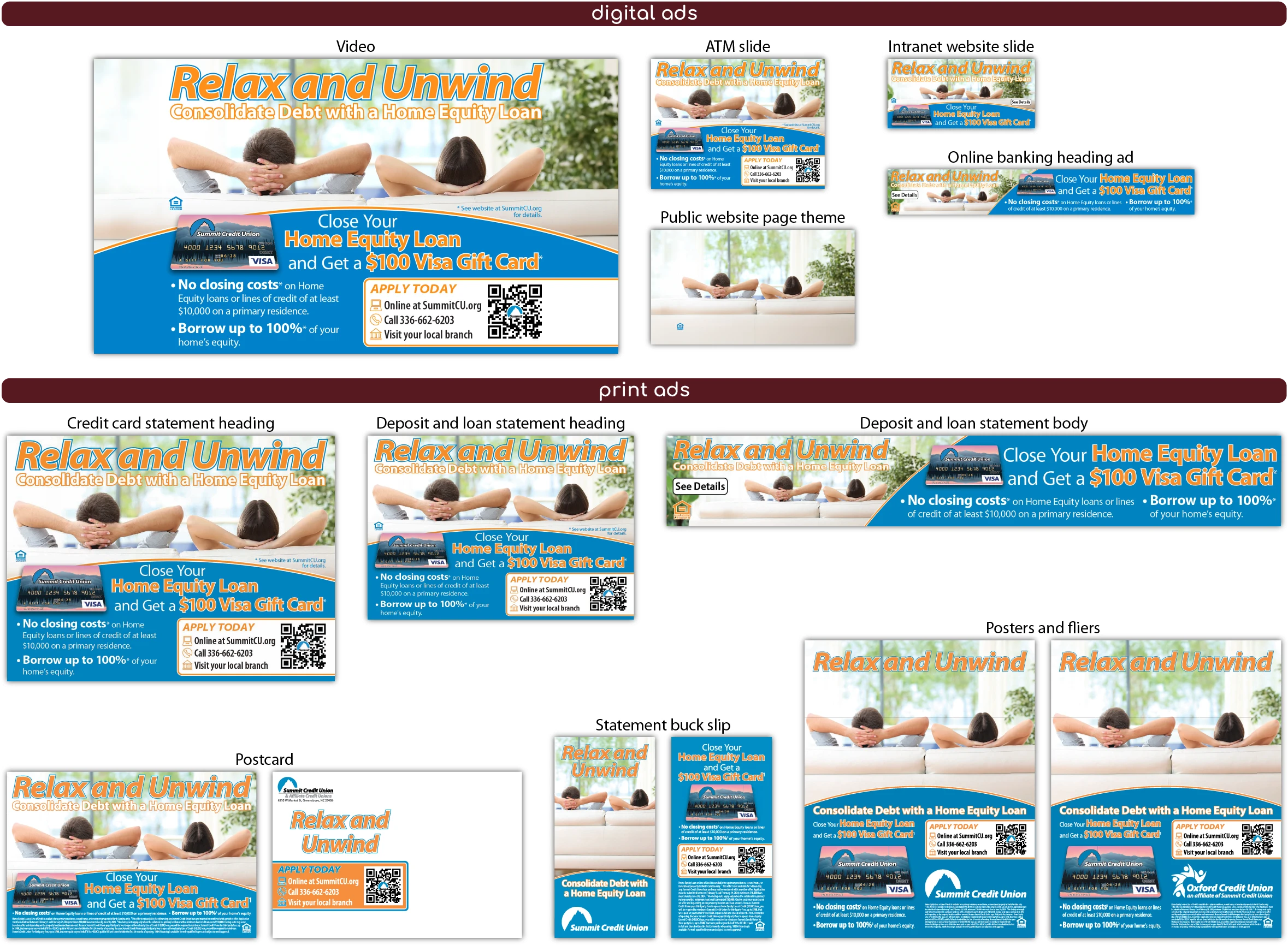 1 Feb 2024 Relax and Unwind by dburkhart | posted in: 2024, Campaign, Portfolio, Video | 0 Various Ad FormatsATM SlideIntranet SlideStatement BodyStatement Buck SlipPostcardPosters and Fliers Summary of All Ad Formats