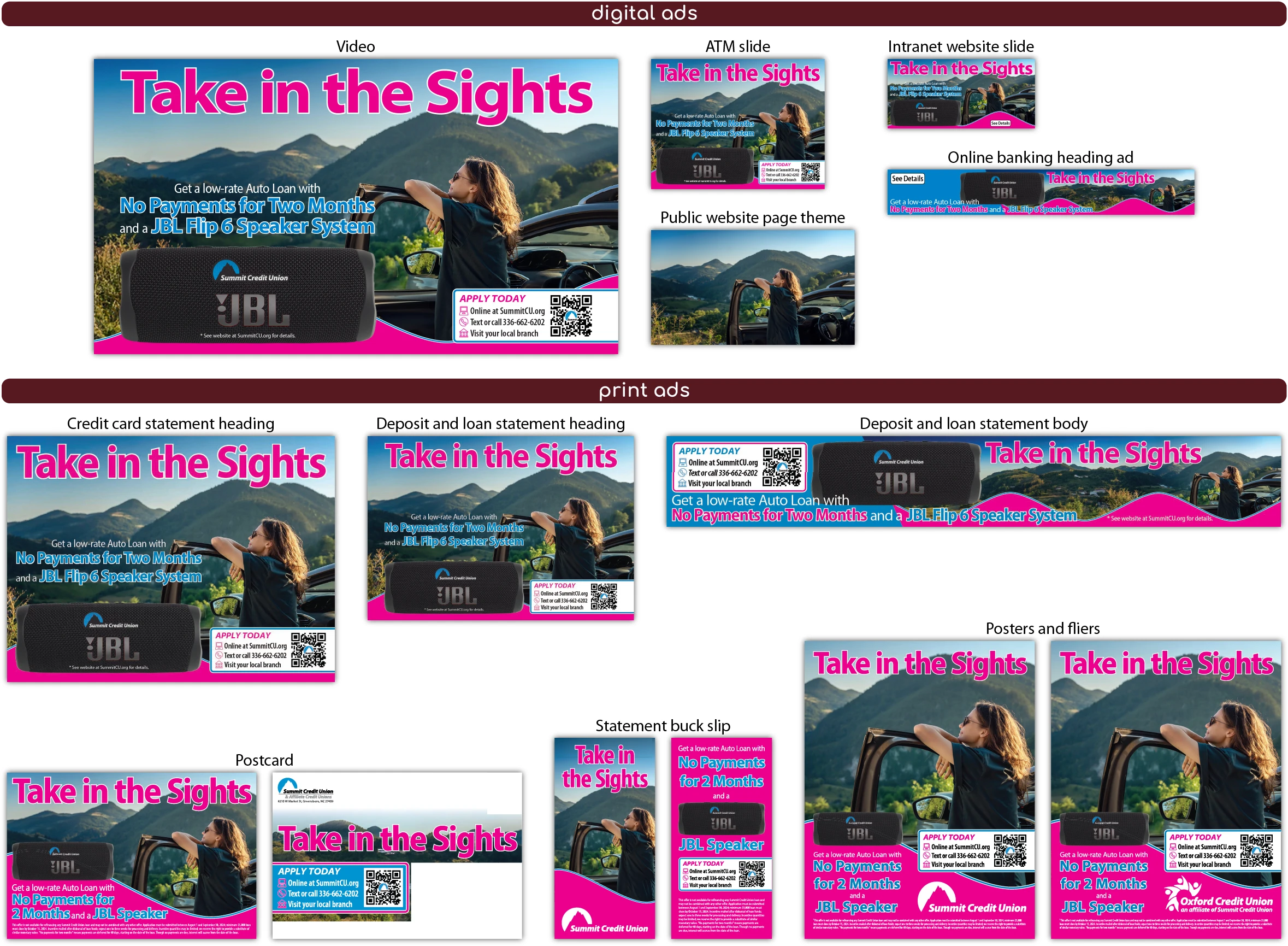 1 Aug 2024 Take in the Sights by dburkhart | posted in: 2024, Campaign, Portfolio, Video | 0 Various Ad FormatsATM SlideIntranet SlideStatement BodyStatement Buck SlipPostcardPosters and Fliers Summary of All Ad Formats
