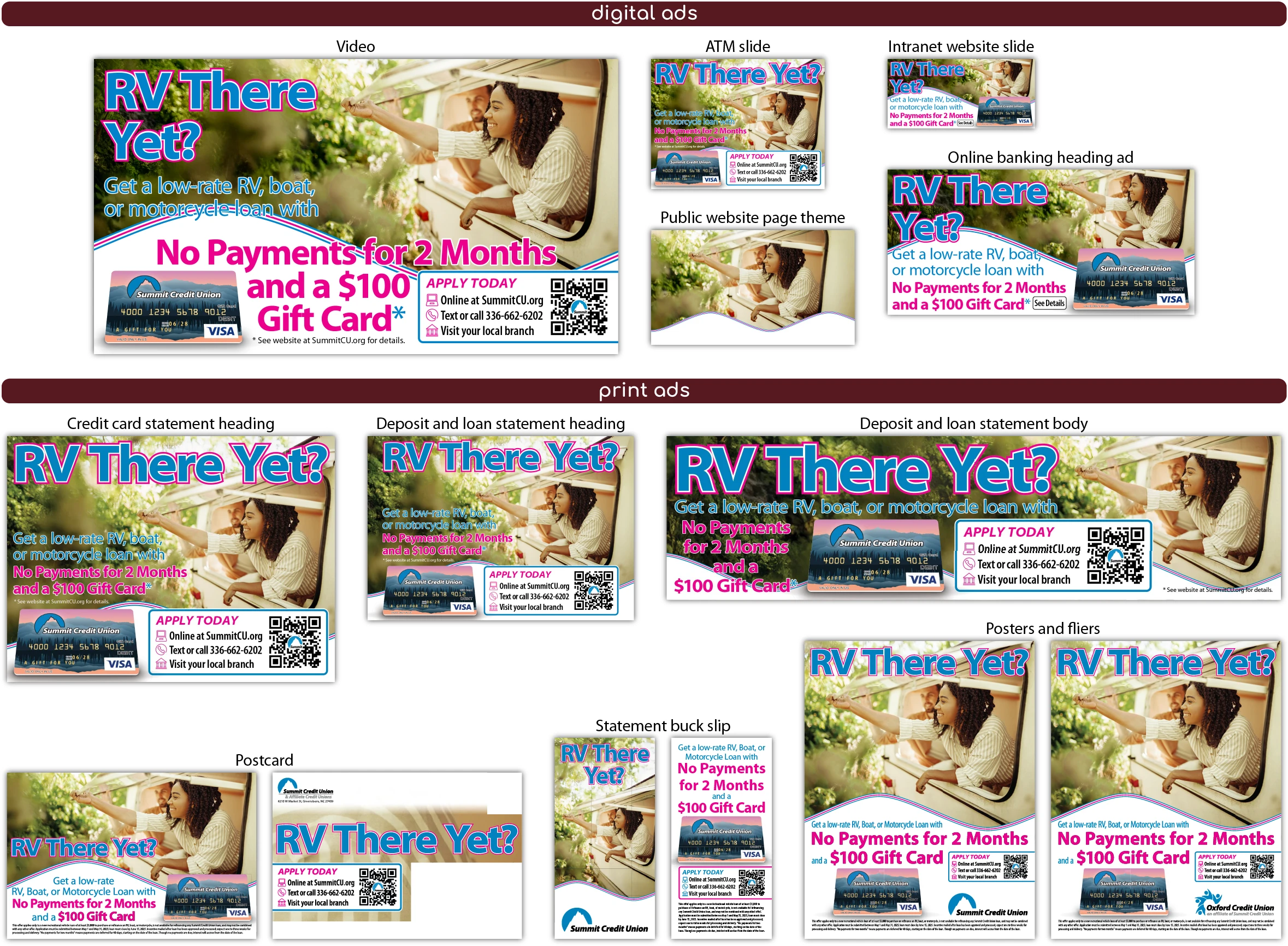 1 May 2025 RV There Yet by dburkhart | posted in: 2025, Campaign, Portfolio, Video | 0 Various Ad FormatsATM SlideIntranet SlideStatement BodyBuck SlipPostcardPosters and Fliers Summary of All Ad Formats